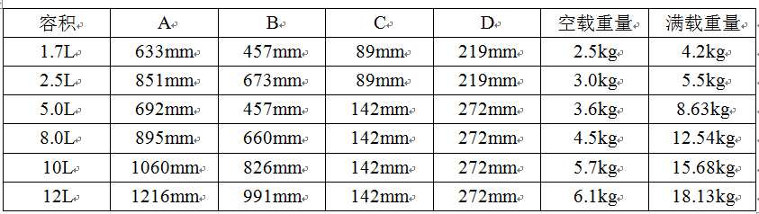 采水容積分為1.7,2.5,5.0,8.0,10,或12L。