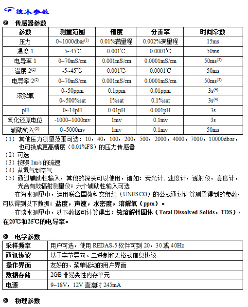 CTD允許用戶使用REDAS-5軟件進行實時在線監測,采樣頻率為20,30或者40Hz。