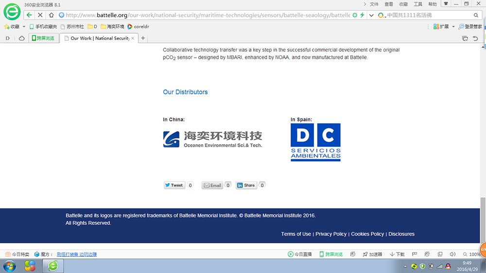 熱烈慶祝海奕環境的專業性服務贏得了美國Battelle公司的認可,繼而獲得了美國Battelle公司授權的“全自動CO2在線監測系統”在中國區的唯一授權經銷商。