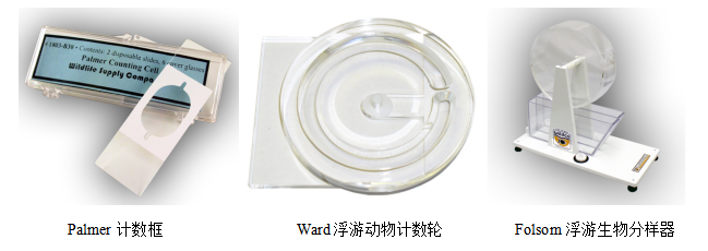 Palmer 計數框:適用于微型浮游生物,淺圓形池,物鏡40 ~ 45×倍下計數,不銹鋼或一次性塑料質。容積0.1ml。