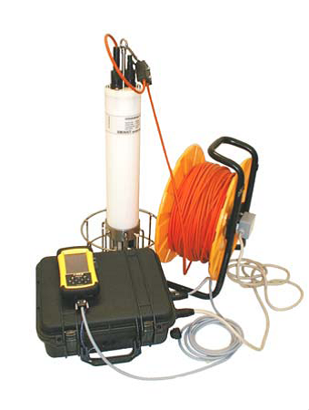 右圖為便攜式數據讀取裝置與接口與OCEAN SEVEN 304 CTD通過RS232C接口相連。RS232C的通訊電纜最多可200米長,并且如果需要的話,可以安裝在手動便攜式絞車上。