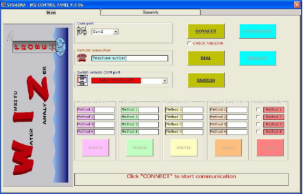 WIZ控制面板軟件(Wiz Control Panel,WCP)通過RS232串行端口與設備外部接口相連,即可對WIZ實現全功能操控。WCP不但可用于本地PC現場操控,還可用于附加了GSM裝置后的遠程操控:
