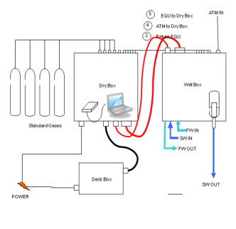 系統分為4個密閉箱體:干箱(Dry Box)、濕箱(Wet Box)、衛星通信箱(Satellite Deck Box)和激光分析儀。
